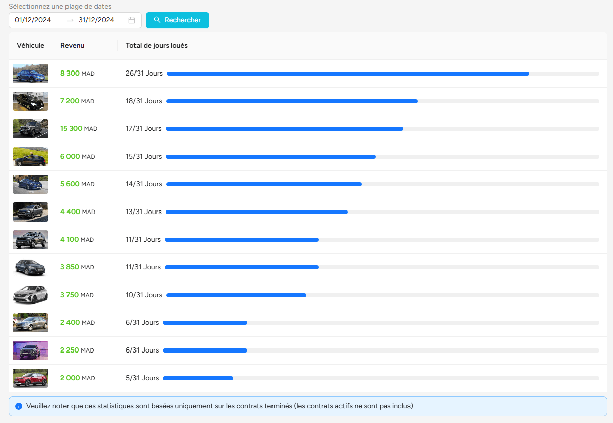 Obtenez des statistiques et des rapports détaillés sur votre flotte, vos clients et vos réservations pour vous aider à prendre des décisions éclairées.